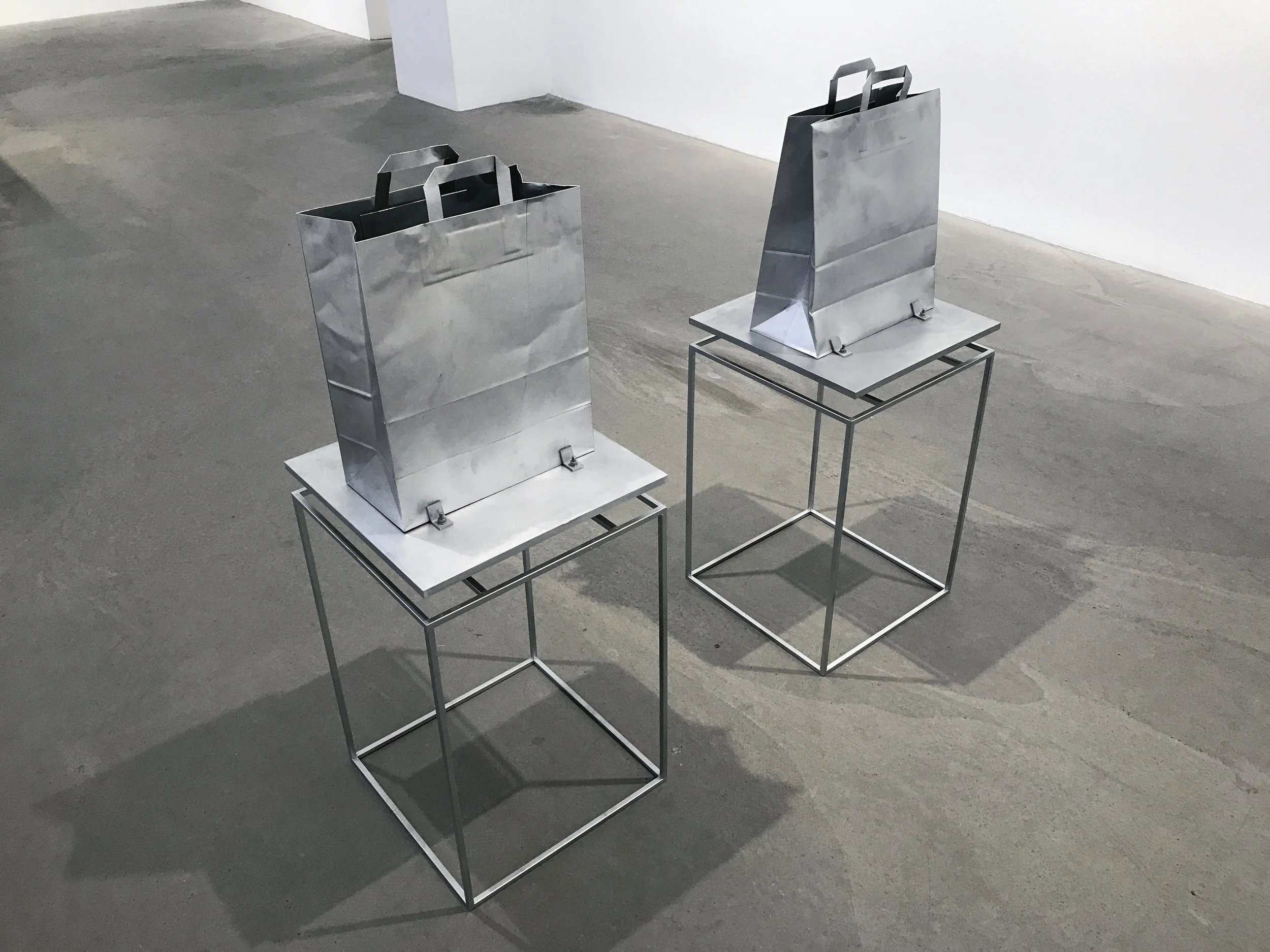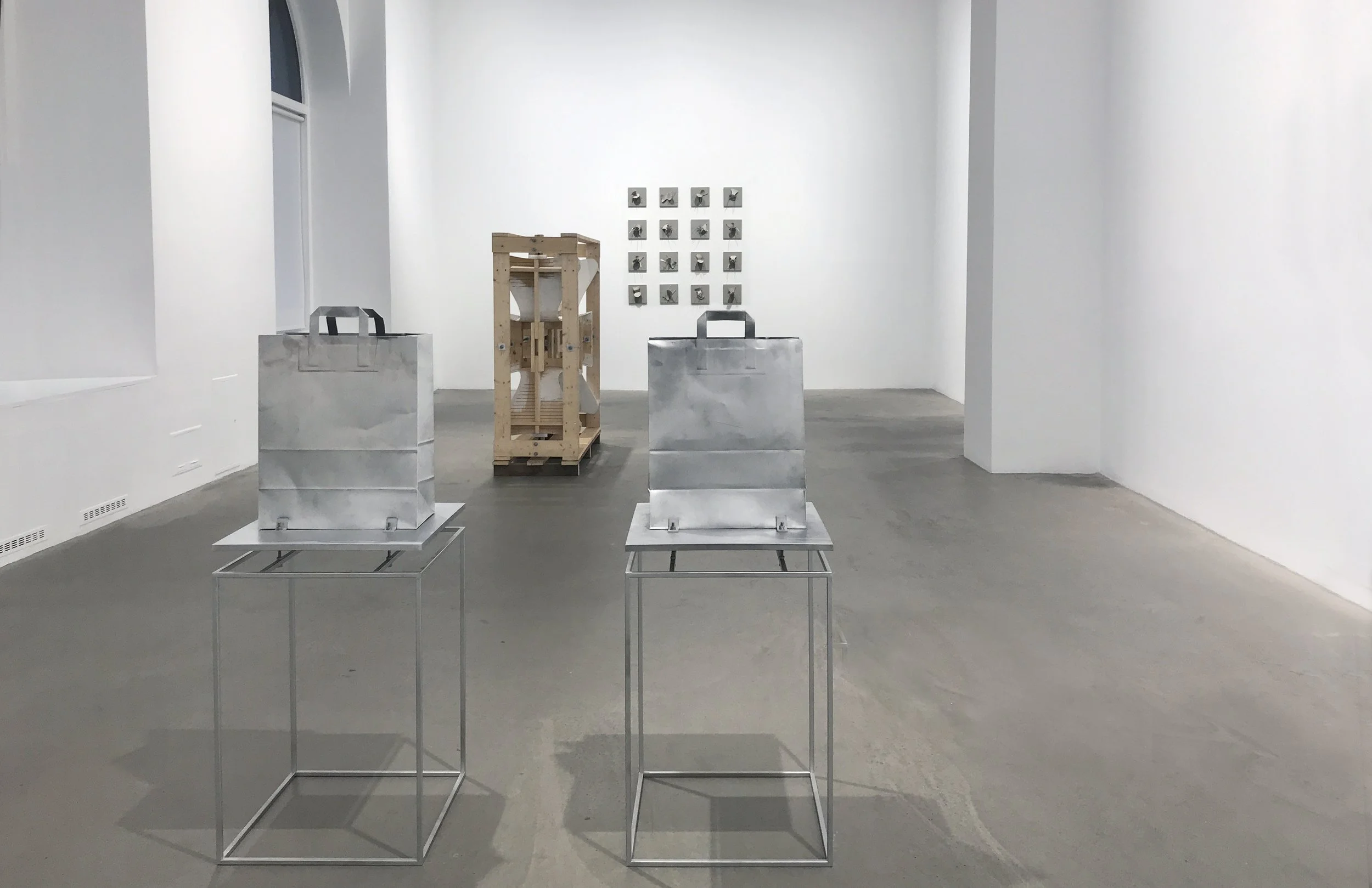 Modernity’s industrially produced objects bear traces of a swift, unpredictable hand. Times and expressions overlap. Three-dimensional forms meet the two-dimensional; sculpture and painting speak as one. Past and emerging present converge. Where are we now, in the present, or in the future?