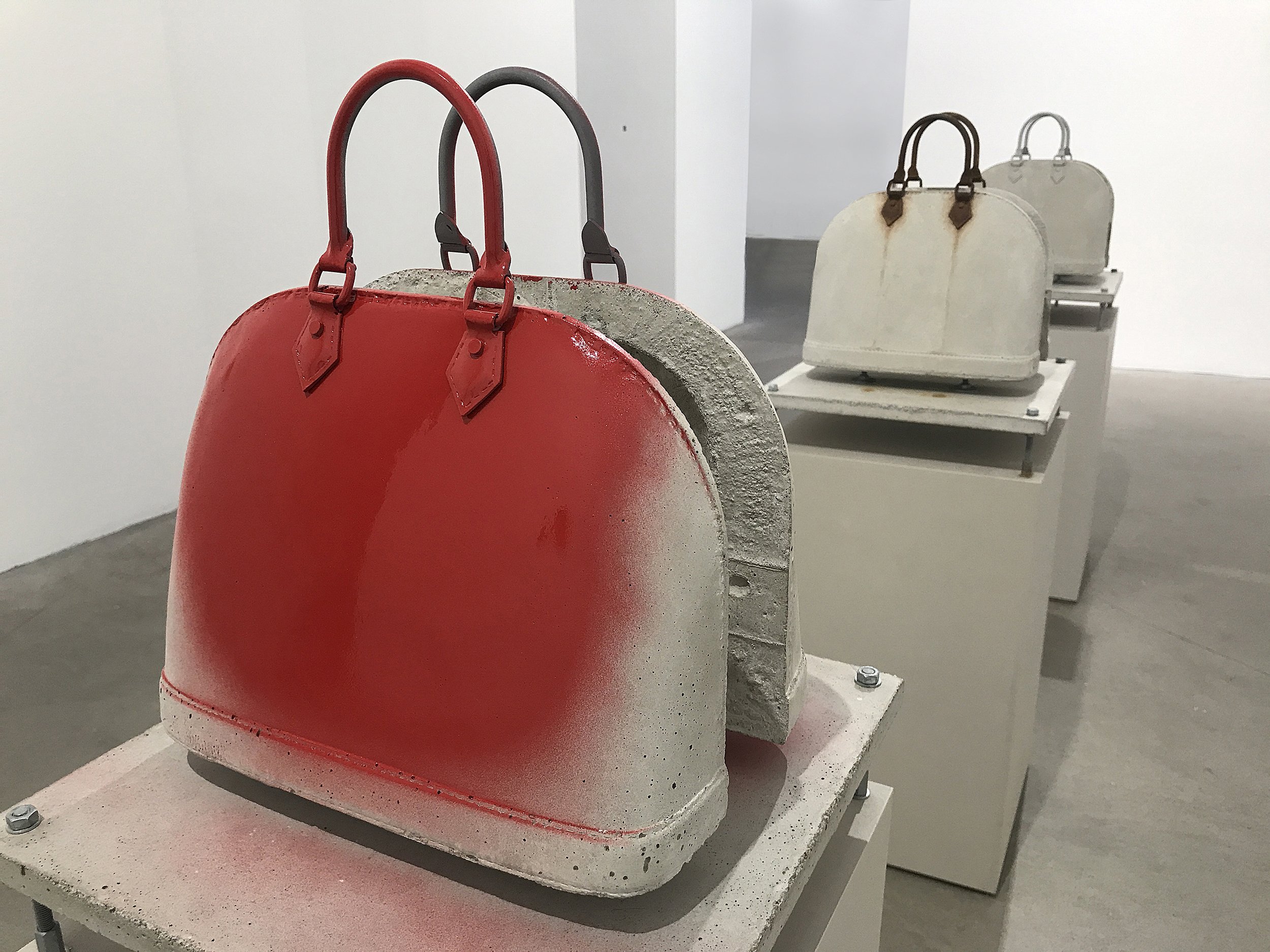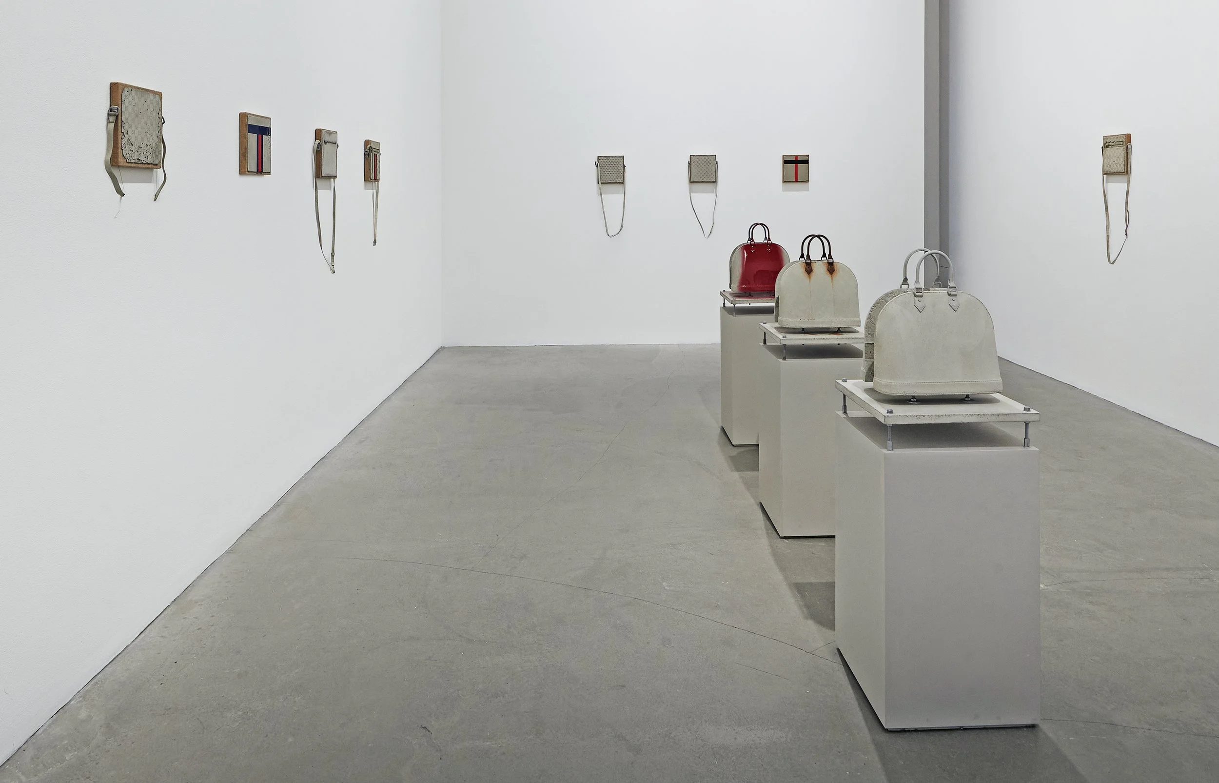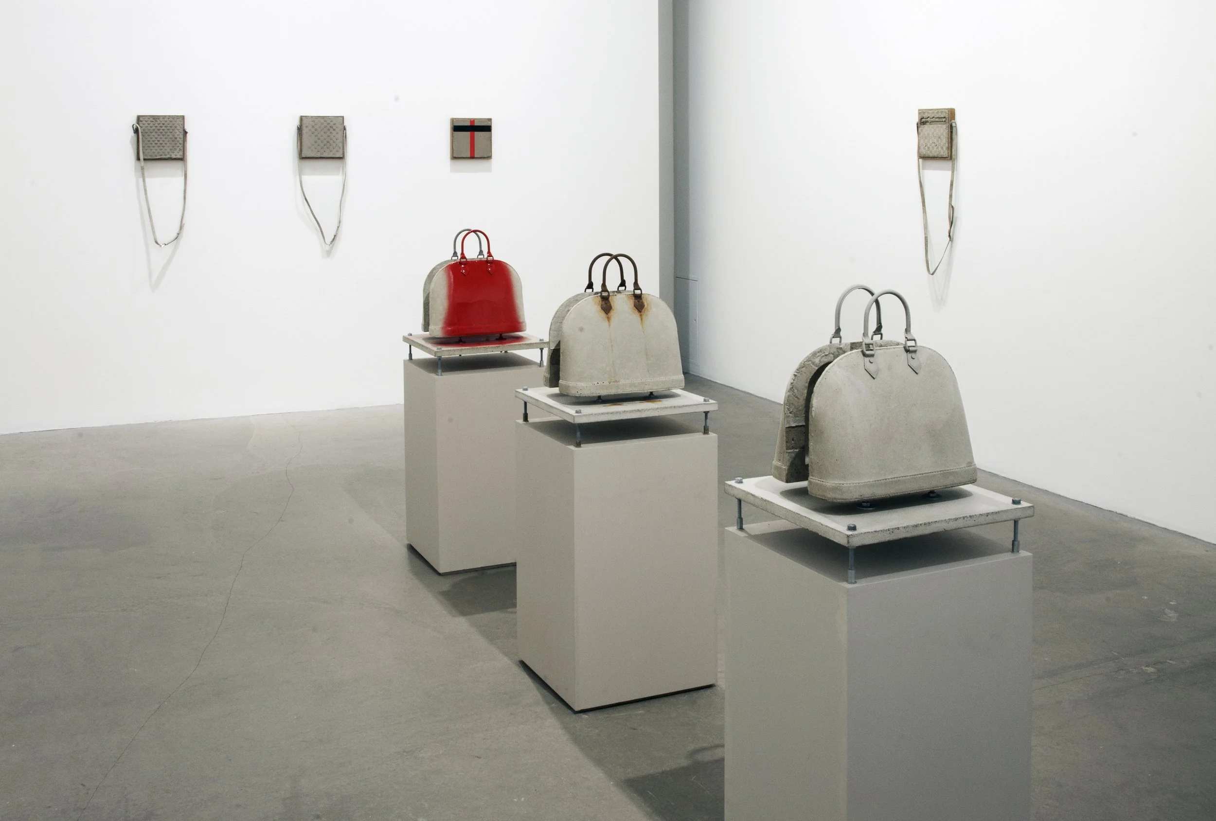 Through an archaeological approach to the layers of art and consumer culture, Johansen reveals the hidden mystique of everyday objects. Viewers encounter disenchanting luxury items—bags, fabrics, chairs—arranged in the gallery as an archive of recovered artifacts. Hung, displayed, and mounted, these decoded objects hover between thing and artwork.